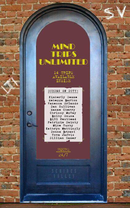 Greetings and welcome to Mind Trips Unlimited. Don't let the well-used exterior fool you; we're open for business twenty-four hours a day, every day. Have a seat. Relax. And kiss your body goodbye. Wait! Sit back down. That does sound freaky, but no need for alarm. You just won't need your body for a while. Bodies are restricted by the laws of physics and aren't necessary for a mind trip. Lovely things, minds. No restrictions, no hindrances, no inhibitions. They can be as free as you will allow. We have fourteen different journeys for you to select from today. You can take all fourteen in one sitting, or spread them out over several visits. It's totally up to you. While you're here, you're the boss. Take your time and we'll see you when you get back.
