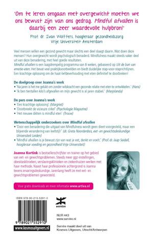 Miljoenen mensen willen een gezond gewicht hebben. Veel mensen falen hierin, slechts een deel slaagt wel. Wat doen deze mensen anders dan de rest? Hun overgewicht wordt psychologisch benaderd. Ook mindfulness maakt steeds vaker deel uit van deze benadering, met heel goede resultaten. Dit programma duurt 8 weken, bevat veel praktijkvoorbeelden en duidelijke stap-voor-staprichtlijnen. Het is een krachtige oplossing om de haat-liefdeverhouding met eten definitief te doorbreken.