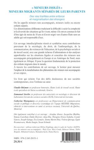 On les appelle mineurs non accompagnés, mineurs isolés ou encore enfants séparés. Ces dénominations différentes traduisent la difficulté à saisir la complexité et la diversité des situations qu'ils vivent, même s'ils ont en commun le fait d'être âgés de moins de 18 ans et d'avoir migré vers d'autres Etats sans un adulte qui soit responsable d'eux. Cet ouvrage interdisciplinaire réunit et synthétise onze contributions provenant de la sociologie, du droit, de l'anthropologie, de la communication, des sciences de l'éducation, de la psychologie sociale et du travail social.