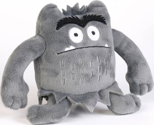 Peluche grise (peur) sur le thème du Monstre des couleurs : il aide l'enfant à exprimer ses émotions.