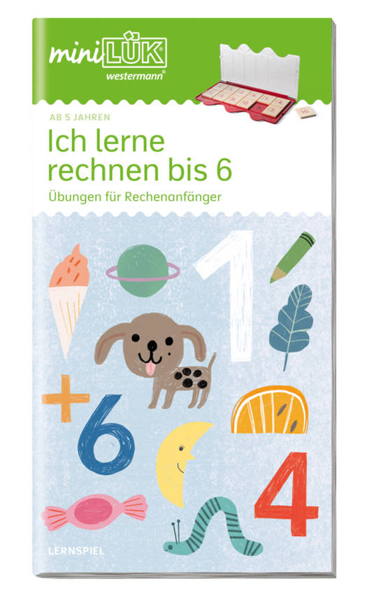 Das miniLÜK Übungshefte "Ich lerne rechnen bis 6" führt Kinder mit abwechslungsreichen Übungen und liebevollen Illustrationen spielerisch an das Fach Mathematik heran. Die Aufgaben werden durch bildliche Darstellungen unterstützt und mathematische Grundfähigkeiten im Zahlraum bis 6 so Stück für Stück aufgebaut. Und wer zählt nicht gerne Eiskugeln oder Luftballons?