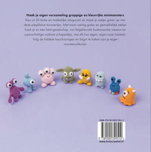 Minimonsters haken bevat 26 grappige monstertjes om als amigurumi’s te haken. Het zijn schattige wezentjes met bolle ogen, slungelarmen en koddige beentjes. De beestjes kunnen gehaakt worden van alle kleine restjes garen dat je nog hebt liggen. Je gebruikt de monstertjes voor sleutelhangers, kinderwagenkettingen, versieringen aan je telefoon, tassenhangers en als kleine figuurtjes voor het poppenhuis. Of waarvoor dan ook!
