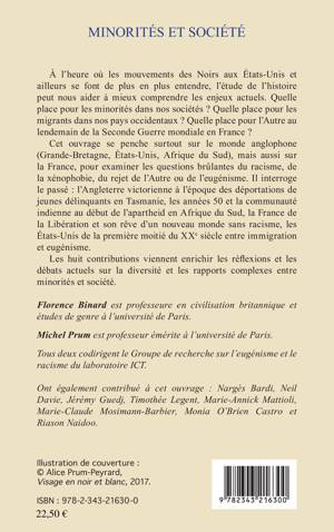 À l'heure où les mouvements des Noirs aux États-Unis et ailleurs se font de plus en plus entendre, l'étude de l'histoire peut nous aider à mieux comprendre les enjeux actuels. Quelle place pour les minorités dans nos sociétés ? Quelle place pour les migrants dans nos pays occidentaux ? Quelle place pour l'Autre au lendemain de la Seconde Guerre mondiale en France ? Cet ouvrage se penche surtout sur le monde anglophone, mais aussi sur la France, pour examiner les questions brûlantes du racisme, de la xénophobie, du rejet de l'Autre ou de l'eugénisme. Il interroge le passé : l'Angleterre victorienne en Tasmanie, les années 50 et la communauté indienne au début de l'apartheid en Afrique du Sud, la France de la Libération, les États-Unis de la première moitié du XXe siècle entre immigration et eugénisme. Les huit contributions viennent enrichir les réflexions et les débats actuels sur la diversité et les rapports complexes entre minorités et société.
