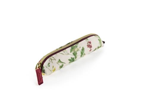 Trousse ovale Botanical Flora. Dimensions : 195 x 35 x 40 mm. Matière : extérieur en coton et intérieur en polyester. Message estampillé doré.