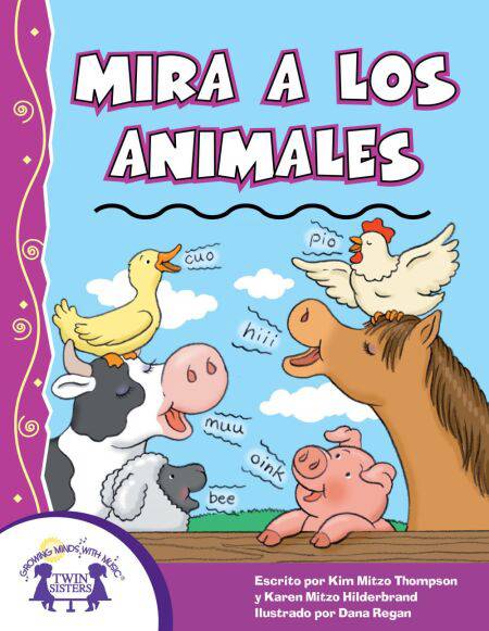 ¡Los niños aprenderán las palabras sencillas de español en este libro divertido y ilustrado, por ejemplo, granja, pollos, animales, caballos, ovejas, vacas, pators y cerdos!(Children will learn simple Spanish words through this fun illustrated story, for example, farm, chickens, animals, horses, sheep, cows, ducks and pigs!)A trip to a farm is always fun for little ones. From cows going “moo,” “moo,” “moo,” to ducks going “quack,” “quack,” “quack,” young learners will discover the sounds that different farm animals make. It's an animal symphony of special sounds. Learn simple English words and phrases with the corresponding version Look At The Animals.
