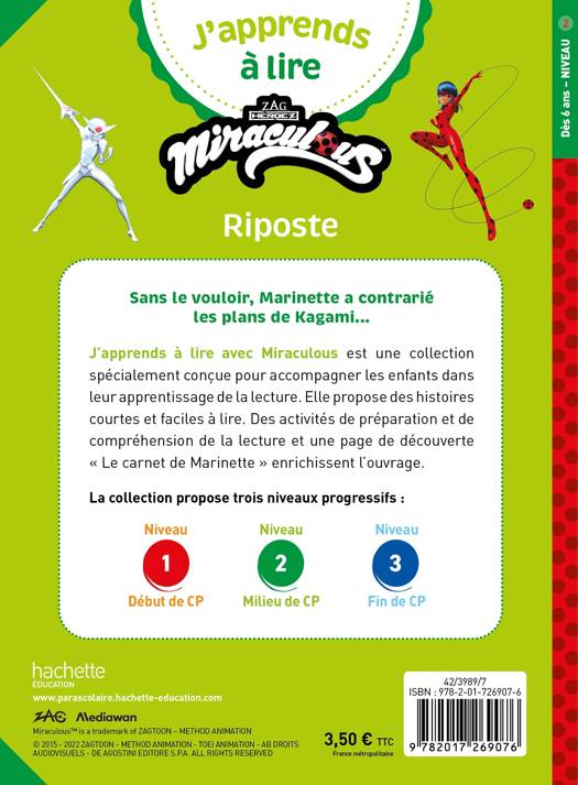 J’apprends à lire avec Miraculous est une collection spécialement conçue pour accompagner les enfants dans leur apprentissage de la lecture. Elle propose des histoires courtes et faciles à lire. Des activités de préparation et de compréhension de la lecture et une page de découverte « Le carnet de Marinette » enrichissent l’ouvrage.