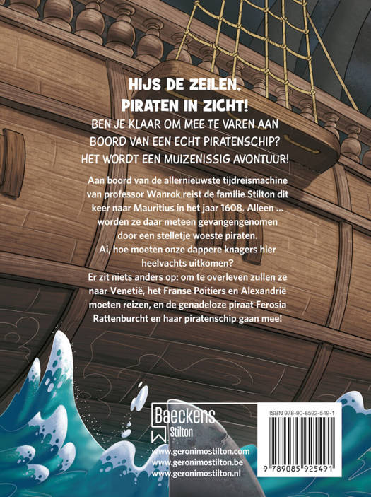 Volg Geronimo, Duifje, Benjamin, Keetje én professor Albert Wanrok op deze gi-ga-gave twaalfde reis door de tijd! Aan boord van de allernieuwste tijdreismachine reist de familie dit keer naar Mauritius in het jaar 1608. Spanning verzekerd!