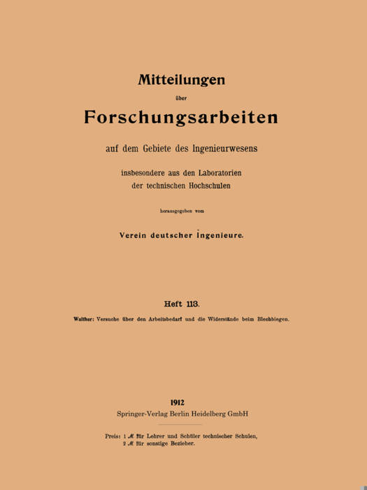 Livre broché | Allemand | Forschungsarbeiten Auf Dem Gebiete Des Ingenieurwesens | n° 113
