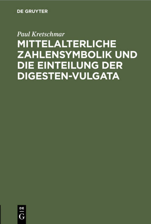 Mittelalterliche Zahlensymbolik Und Die Einteilung Der Digesten-Vulgata