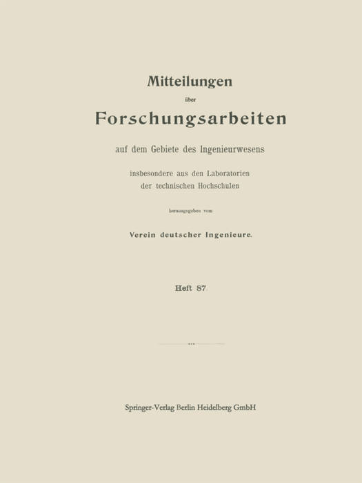 Livre broché | Allemand | Forschungsarbeiten Auf Dem Gebiete Des Ingenieurwesens | n° 87