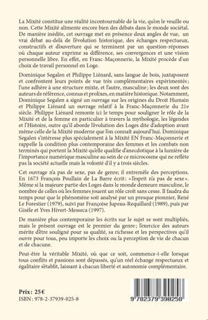 La Mixité une réalité incontournable de la vie, qu'on le veuille ou non. De manière inédite, cet ouvrage met en présence deux angles de vue, un vrai débat au-delà de l'évolution historique d'une Mixité multiséculaire, des échanges respectueux, constructifs et d'ouverture qui se terminent par un questions-réponses où chaque auteur exprime sa différence, ses convergences et une vision personnelle libre. Cette Mixité alimente des débats du monde sociétal, économique, politique, dans la Franc-Maçonnerie, comme dans d'autre milieux ouverts au 21e siècle. Mais en Franc-Maçonnerie, la Mixité procède d'un choix de travail en Loge. On peut donc la refuser. Cet ouvrage met en présence deux vues issues de mouvances très différentes, celui d'une femme et d'un homme, au sujet d'une Mixité multiséculaires qui mélange les genres et par extension, dans la maçonnerie. La France comporte 75 millions d'habitants; il y a 180.000 Maçons en France; la Maçonnerie en représente 0,2 %, un microcosme donc.
