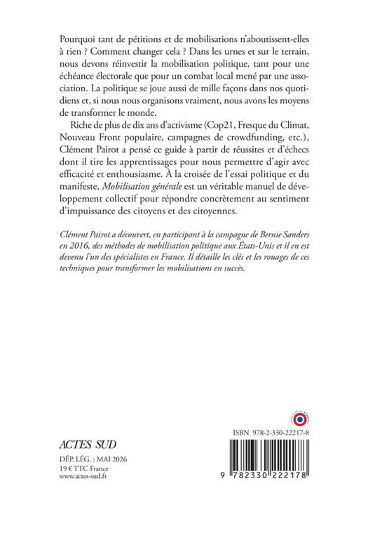 Clément Pairot a découvert des méthodes de mobilisation politique aux États-Unis en participant à la campagne de Bernie Sanders en 2016 et il en est devenu l'un des spécialistes en France. Avec ce livre, il détaille les clés et les rouages de ces techniques pour transformer les mobilisations en succès et ne plus se contenter de signer des pétitions aux effets très relatifs...
