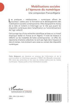 Les pratiques médiactivistes numériques offrent de nouveaux cadres pour la formation et le développement des mobilisations sociales contemporaines. Elles élargissent le champ de la lutte et incitent à s'interroger sur le rôle que jouent les dispositifs numériques dans l'amplification ou l'amoindrissement de l'agir collectif. Cet ouvrage issu d'une recherche scientifique se base sur un travail empirique réalisé en France et en Algérie. Il invite les lecteurs à réfléchir sur les modalités de luttes contemporaines: en effet, les répertoires d'actions collectives ne sont pas figés dans l'espace et dans le temps, mais évoluent sans cesse au contact des dispositifs numériques.