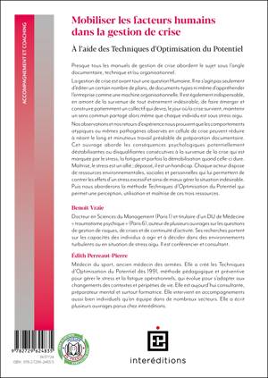 Presque tous les manuels de gestion de crise abordent le sujet sous l’angle documentaire, technique et/ou organisationnel. La gestion de crise est avant tout une question Humaine. Il ne s’agit pas seulement d’éditer un certain nombre de plans, de documents-types ni même d’appréhender l’entreprise comme une machine organisationnelle. Il est également indispensable, en amont de la survenue de tout évènement indésirable, de faire émerger et construire patiemment un collectif qui devra, le jour où la crise survient, maintenir un sens commun partagé alors même que chaque individu est sous stress aigu. Nos observations et nos retours d’expérience nous prouvent que les comportements atypiques ou mêmes pathogènes observés en cellule de crise peuvent réduire à néant le long et minutieux travail préalable de préparation documentaire. Cet ouvrage aborde les conséquences psychologiques potentiellement déstabilisantes ou disqualifiantes consécutives à la survenue de la crise qui est marquée par le stress, la fatigue et parfois la démobilisation quand celle-ci dure. Maîtrisé, le stress est un allié ; dépassé, il est un handicap. Chaque acteur dispose de ressources environnementales, sociales et personnelles qui lui permettent de contrer les effets d’un stress excessif et ainsi de mieux gérer la situation indésirable. Puis nous aborderons la méthode Techniques d’Optimisation du Potentiel qui permet une perception, utilisation et maîtrise de ces trois ressources.
