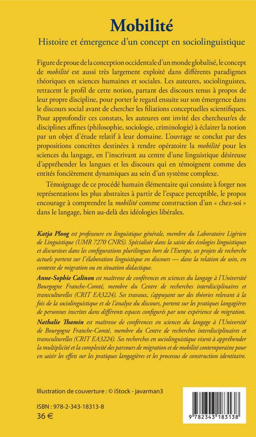 Figure de proue de la conception occidentale d'un monde globalisé, le concept de mobilité est aussi très largement exploité dans différents paradigmes théoriques en sciences humaines et sociales. Les auteures, sociolinguistes, tracent le profil de cette notion. Partant des discours tenus à propos de leur propre discipline, elles portent leur regard sur son émergence dans le discours social avant de chercher ses filiations conceptuelles scientifiques. Pour approfondir leurs constats, elles ont invité des chercheur/es de disciplines affines à éclairer la notion par un objet d'étude relatif à leur domaine. L'ouvrage se conclut par des propositions concrètes destinées à rendre opératoire la mobilité pour les sciences du langage, en l'inscrivant au centre d'une linguistique désireuse d'appréhender les langues et les discours comme des entités foncièrement dynamiques au sein d'un système complexe.