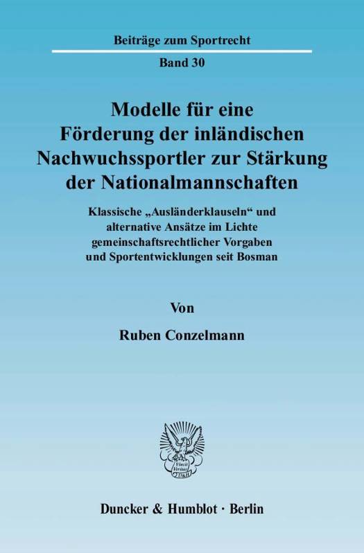 In einem empirischen Teil werden zunächst Sportentwicklungen seit "Bosman" am Beispiel des Fußballsports dargestellt und erörtert. Sodann werden vier Modelle für eine Nachwuchsförderung vorgestellt und auf ihre Vereinbarkeit mit dem Gemeinschaftsrecht untersucht. Im Mittelpunkt der Untersuchung stehen sog. Mindestkontingente für einheimische Nachwuchssportler. Ausgangspunkt der Begutachtung ist die bisherige Sport-Rechtsprechung des EuGH, die stellenweise behutsam weiterentwickelt wird. Gemeinschaftsrechtliche Konfliktlagen tun sich erwartungsgemäß bei den EG-vertraglichen Diskriminierungsverboten und dem Kartellrecht auf.