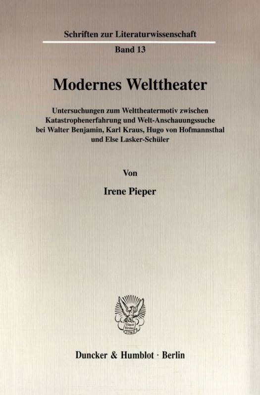 Untersuchungen Zum Welttheatermotiv Zwischen Katastrophenerfahrung Und Welt-Anschauungssuche Bei Walter Benjamin, Karl Kraus, Hugo Von Hofmannsthal Und Else Lasker-Schuler