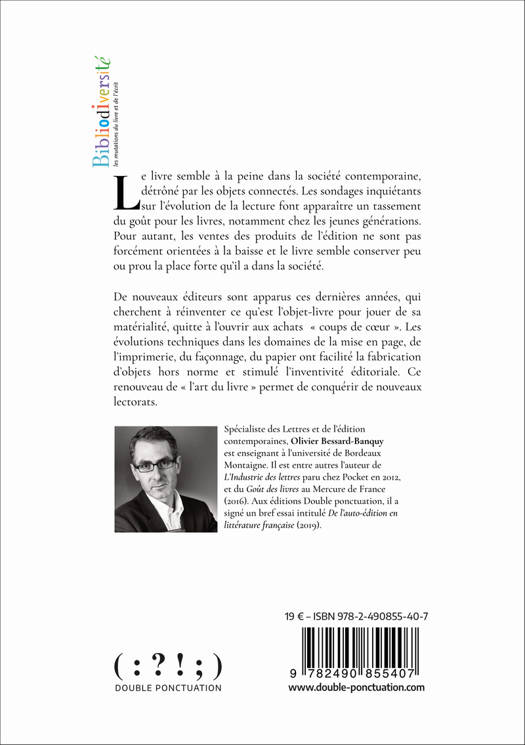 Le livre semble à la peine dans la société contemporaine, détrôné par les objets connectés. Les sondages inquiétants sur l'évolution de la lecture font apparaître un tassement du goût pour les livres, notamment chez les jeunes générations. Pour autant, les ventes des produits de l'édition ne sont pas forcément orientées à la baisse et le livre semble conserver peu ou prou la place forte qu’il a dans la société. De nouveaux éditeurs sont apparus ces dernières années, qui cherchent à réinventer ce qu'est l'objet livre en soi pour jouer de sa matérialité, quitte à l’ouvrir aux achats coups de coeur. Les évolutions techniques dans les domaines de la mise en page, de l'imprimerie, du façonnage, du papier ont facilité la fabrication d'objets hors norme et stimulé l'inventivité éditoriale. Ce livre rend hommage à la créativité de ceux qui produisent des livres remarquables et redonnent de la visibilité ou de l'importance à l'art du livre.