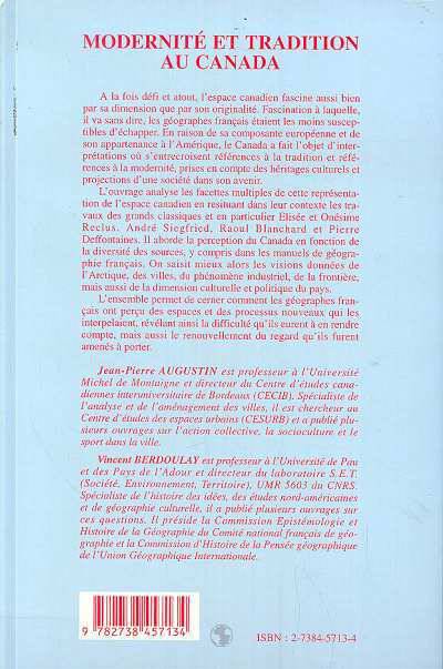 A la fois défi et atout, l'espace canadien fascine aussi bien par sa dimension que par son originalité. Fascination à laquelle, il va sans dire, les géographes français étaient les moins susceptibles d'échapper. En raison de sa composante européenne et de son appartenance à l'Amérique, le Canada fait l'objet d'interprétations où s'entrecroisent références à la tradition et références à la modernité, prises en compte des héritages culturels et projections d'une société dans son avenir. L'ouvrage analyse les facettes multiples de cette représentation de l'espace canadien en resituant dans leur contexte les tavaux des grands classiques et en particulier Elisée et Onésime Reclus, André Siegfried, Raoul Blanchard et Pierre Deffontaines. Il aborde la perception du Canada en fonction de la diversité des sources, y compris dans manuels de géographie français. On saisit mieux alors les visions données de l'Arctique des villes, du phénomène industriel, de la frontière ; mais aussi de la dimension culturelle et politique du pays.