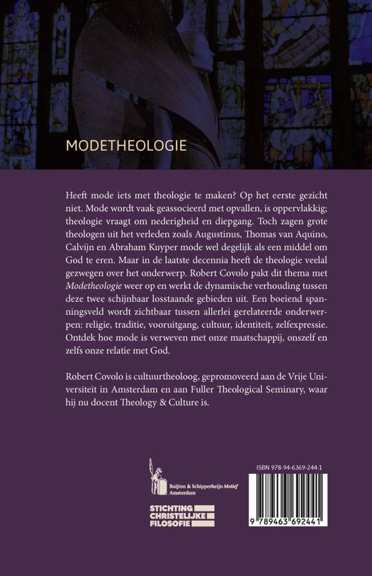 Heeft mode iets met theologie te maken? Op het eerste gezicht niet. Mode wordt vaak geassocieerd met opvallen, is oppervlakkig; theologie vraagt om nederigheid en diepgang. Toch zagen grote theologen uit het verleden zoals Augustinus, Thomas van Aquino, Calvijn en Abraham Kuyper mode wel degelijk als een middel om God te eren. Maar in de laatste decennia heeft de theologie veelal gezwegen over het onderwerp. Robert Covolo pakt dit thema met Modetheologie weer op en werkt de dynamische verhouding tussen deze twee schijnbaar losstaande gebieden uit. Een boeiend span-ningsveld wordt zichtbaar tussen allerlei gerelateerde onderwer¬pen: religie, traditie, vooruitgang, cultuur, identiteit, zelfexpressie. Ontdek hoe mode is verweven met onze maatschappij, onszelf en zelfs onze relatie met God. Robert Covolo is cultuurtheoloog, gepromoveerd aan de Vrije Universiteit in Amsterdam en aan Fuller Theological Seminary, waar hij nu docent Theology & Culture is.