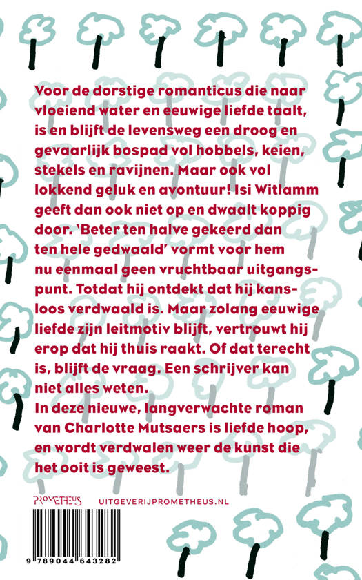 Voor de dorstige romanticus die naar vloeiend water en eeuwige liefde taalt, is en blijft de levensweg een droog en gevaarlijk bospad vol hobbels, keien, stekels en ravijnen. Maar ook vol lokkend geluk en avontuur! Isi Witlamm geeft dan ook niet op en dwaalt koppig door. ‘Beter ten halve gekeerd dan ten hele gedwaald’ vormt voor hem nu eenmaal geen vruchtbaar uitgangspunt. Totdat hij ontdekt dat hij kansloos verdwaald is. Maar zolang eeuwige liefde zijn leitmotiv blijft, vertrouwt hij erop dat hij thuis raakt. Of dat terecht is, blijft de vraag. Een schrijver kan niet alles weten.