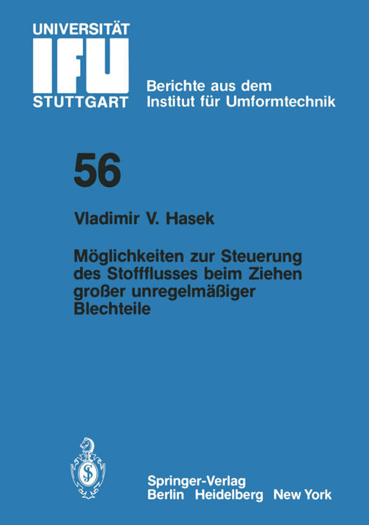 Beim Ziehen groBer unregelmaBiger Blechteile werden heute ver- breitet Ziehstabe eingesetzt. Damit wird dem Einlaufen des Bleches in die Ziehmatrize ein ortlich unterschiedlicher Widerstand entgegengesetzt. Die Ziehstabe werden in der Praxis vor allem in vlerkzeugen zur Umformung von groBflachi- gen Ziehteilen verwendet, deren Kontur keine gleichmaBige Rundung aufweist, sondern mit z. T. unregelmaBig auftreten- den Ecken versehen ist. Zu diesen sogenannten groBen unre- gelmaBigen Ziehteilen gehoren z. B. Karosserieblechteile und auch einige rechteckige und quadratische Ziehteile. Die hier eingesetzten Ziehstabe haben die Aufgabe, den Werkstoff- fluB wahrend der Umformung zu steuern. Im Rahmen dieser Arbeit sollte nun der EinfluB unterschied- lich bemessener Ziehstabe auf die Umformkrafte und Forman- derungen, die im Tiefziehwerkzeug hervorgerufen werden, unter- sucht werden. Das Ergebnis dieser Arbeit 5011 zeigen, ob sich in Abhangig- keit von den MaBen und der Anordnung von Ziehstaben eine Aus- sage tiber die bei der Umformung auftretenden Krafte und Form- anderungen machen laBt. Da bei den Versuchen aIle maschinen- seitigen GroBen konstant gehalten wurden, konnen die Ergeb- nisse nur in Abhangigkeit von den veranderlichen Parametern Ziehstabbreite, Ziehstabhohe und Ziehstabanordnung im Zieh- werkzeug angegeben werden. Die Schmierstoffe werden mittels des Grenzziehverhaltnisses;3 max und durch Ausmessen der Formanderungsverteilung tiber der Ziehteilkontur beurteilt. Das Grenzziehverhaltnis J3 ist eine werkstoffcharakteristi- max sche KenngroBe, die eine Aussage tiber die Grenzumformung bei einem Tiefziehvorgang macht. Die Formanderungsverteilung, d.h.