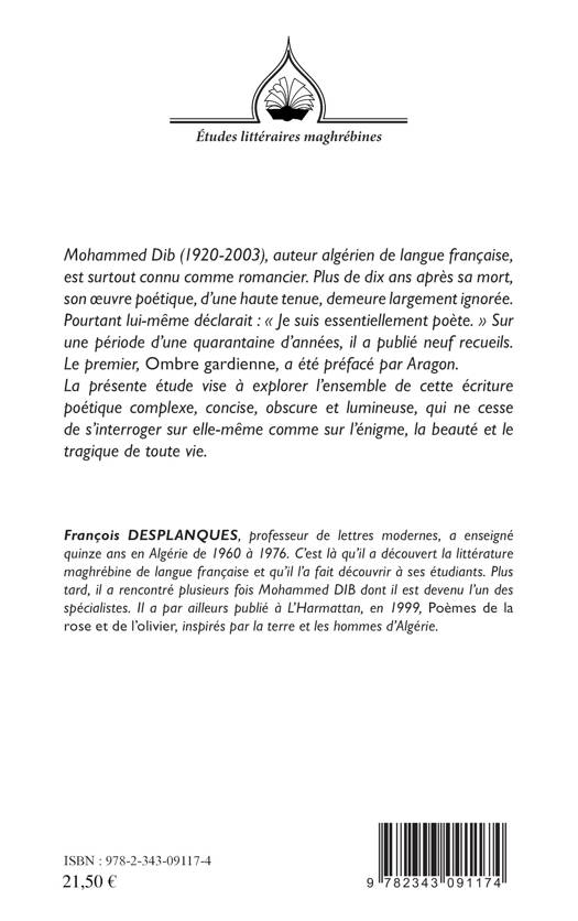 Mohammed Dib (1920-2003), auteur algérien de langue française, est surtout connu comme romancier. Son oeuvre poétique, d'une haute tenue, demeure largement ignorée. Pourtant, il déclarait lui-même : "Je suis essentiellement poète." Sur une période d'une quarantaine d'années, il a publié neuf recueils. Cet ouvrage explore l'ensemble de cette écriture complexe, concise, obscure, lumineuse, qui ne cesse de s'interroger sur elle-même comme sur l'énigme, la beauté et le tragique de toute vie.