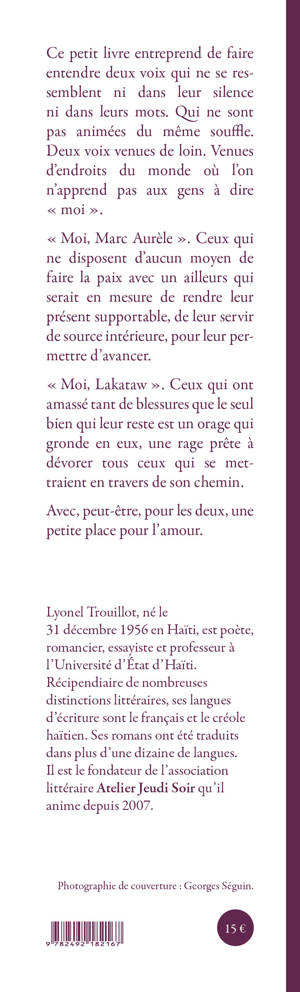 Poésie en prose, poésie en vers ; deux textes pour permettre au lectorat francophone d’accéder à cette partie de l’oeuvre de Lyonel Trouillot qu’il écrit directement en créole haïtien. Une poésie au plus près de l’humain, de ses failles, de ses espérances et de son soulèvement. Poète et intellectuel engagé, Lyonel Trouillot, né en 1956 en Haïti où il vit toujours aujourd’hui, est l’auteur de nombreux romans tous distingués par la critique. Journaliste et professeur de littératures française et créole, il a fondé et anime à Port-au-Prince le collectif d’écriture Atelier Jeudi Soir.