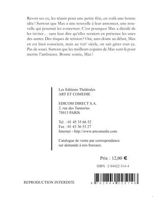 Revoir ses ex, les réunir pour une petite fête, en voilà une bonne idée ! Surtout que Max a une nouvelle à leur annoncer, une nouvelle qui pourrait les concerner. C'est pourquoi Max a décidé de les inviter... sans leur dire qu'elles seraient en présence les unes des autres. Des risques de tension ? Oui, sans doute au début, Max en est bien conscient, mais au XXIe siècle, on sait gérer tout ça. Pas de souci. Surtout que les meilleurs copains de Max sont là pour mettre l'ambiance. Bonne soirée, Max !