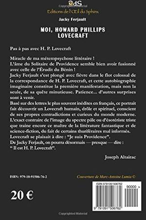 Miracle de la métempsycose littéraire ! L'âme du Solitaire de Providence semble bien avoir fusionné avec celle de l'Érudit du Bénin ! Jacky Ferjault s'est plongé avec fièvre dans le flot colossal de la correspondance de H.P. Lovecraft, et cette autobiographie imaginaire constitue la première manifestation, mais non la seule, de sa quête minutieuse. Patience... D'autres surprises sont à venir. Basé sur des lettres le plus souvent inédites en français, ce portrait fait découvrir un Lovecraft humain, drôle et spirituel, conscient de ses propres contradictions et curieux du monde moderne. L'exact contraire de l'image de spectre pâle ou d'ésotériste triste que traîne encore ce maître de la littérature fantastique et de science-fiction, du fait de certains thuriféraires mal informés. Lovecraft se plaisait à dire : "Je suis Providence". De Jacky Ferjault, on pourra désormais - presque - dire : "Il est H.P. Lovecraft".