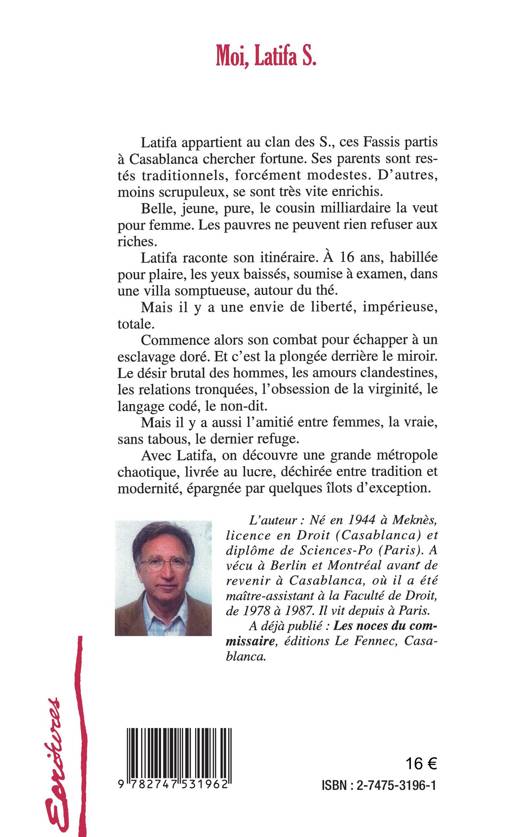 Latifa appartient au clan des S., ces Fassis partis à Casablanca chercher fortune. Ses parents sont restés traditionnels, forcément modestes. Belle, jeune pure, le cousin milliardaire la veut pour femme. Les pauvres ne peuvent rien refuser aux riches. Latifa raconte son itinéraire. A seize ans, habillée pour plaire, les yeux baissés, soumise à examen, dans une villa somptueuse, autour du thé. Mais il y a une envie de liberté, impérieuse, totale. Commence alors son combat pour échapper à un esclavage doré.