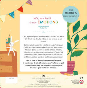 C’est le premier jour à la maternelle !<br /> Mais Léo n’est pas pressé d’y être. À vrai dire, il a même un peu peur de ce qui l’attend. <br /> Comme Léo, il nous arrive à toutes et tous d’avoir peur. Parfois, nous sommes en colère, et parfois nous sommes heureux. Quand un verre se casse, certains pleurent, d’autres rient, et d’autres encore rougissent. Toutes ces émotions qui nous traversent peuvent causer bien des problèmes, surtout quand on les laisse nous submerger. <br /> Dans ce livre, tu découvriras comment s’est passé le premier jour de Léo à l’école, ce qu’il a fait et ce qu’il a ressenti. Et en lisant son expérience, tu apprendras toi aussi à gérer toutes ces émotions.
