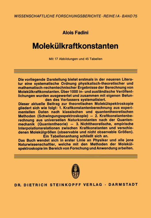 Die Berechnung der Konstanten der potentiellen Energie der MolekiUe ist eines der Hauptprobleme in der Auswertung der Molekiilspektren ((0:32), S. 28, (0:21), S. 59). Diese Konstanten der potentiellen Energie bzw. Kraftkonstanten der Molekille ermoglichen die Gewinnung von Aussagen iiber jede einzelne Bindung im Molekill, wie dies neben der quantentheoretischen Methode nur noch wenige Methoden fUr vielatomige Molekiile gestatten (7:6). Damit stellt die Kraftkonstantenrechnung ein Hilfsmittel zur Kliirung bindungstheoretischer Strukturfragen chemischer Verbindungen dar. Die experimentellen Grof3en oder Observablen stellen die Schwingungs- frequenzen der Molekiile dar, wie sie mit Ultrarot-und Raman-Spektren-Ge- raten gewonnen werden, die in der sog. Spektralmatrix zusammengefa t wer- den. Weiterhin gehen in die Rechnung noch die Valenzwinkel, die Gleichge- wichtsabstande und die Massen ein, die in der Matrix der kinetischen Energie zusammengefa t werden. Die Berechnung der Matrix der Konstanten der potentiellen Energie erfolgt klassisch nach der Theorie der kleinen Schwingungen, wobei das Molektil als ein mechanisches Punktsystem angesehen wird, dessen klassische Schwingungsfre- quenzen mit den quantentheoretischen Strahlungsfrequenzen flir den Dbergang zwischen Grundzustand und dem ersten angeregten Schwingungszustand des Molekills gleichgesetzt werden kann ((0:27), S. 168). Auch fUr die quantentheoretische Theorie der moglichen EnergiezusUinde von Molekiilen stellen die klassischen Schwingungsfrequenzen die entscheidenden Parameter dar ((0:27), S. 168, (0: 1 06), S. 49).