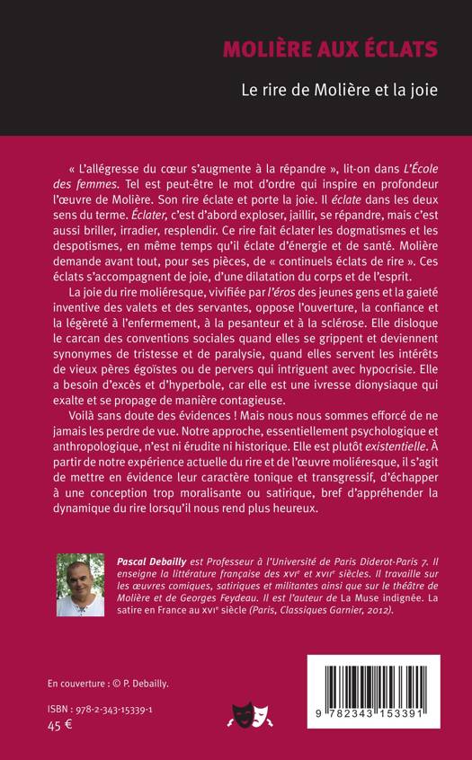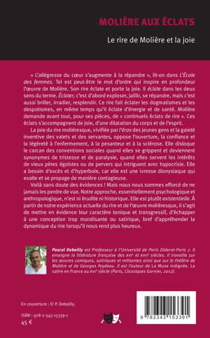 Molière demande avant tout, pour ses pièces, de « continuels éclats de rire ». La joie du rire moliéresque, vivifiée par l'éros des jeunes gens et la gaieté inventive des valets et des servantes, oppose l'ouverture, la confiance et la légèreté à l'enfermement, à la pesanteur et à la sclérose. À partir de notre expérience actuelle du rire et de l'oeuvre moliéresque, il s'agit de mettre en évidence leur caractère tonique et transgressif, d'échapper à une conception trop moralisante ou satirique, bref d'appréhender la dynamique du rire lorsqu'il nous rend plus heureux.