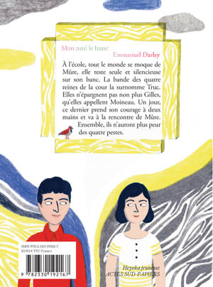Mûre est une petite fille solitaire, elle aimerait se joindre aux autres, mais ça ne vient pas, les mots ne veulent pas sortir de sa bouche. À l'école, tout le monde semble l'ignorer, tout le monde sauf un garçon, Gilles, surnommé "Moineau"... Un texte sensible sur le harcèlement scolaire.