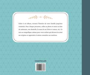 Grâce à cet album, retracez l'histoire de votre famille jusqu'aux trisaïeuls. Pour chaque personne, collez sa photo et notez sa date de naissance, son domicile, le nom de ses frères et sœurs, etc. Ce sera un magnifique cadeau pour votre enfant qui découvrira ainsi ses origines et apprendra à mieux connaître ses ancêtres. Relié avec un élastique.