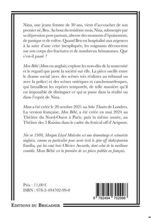 Mon Bébé (Mum en anglais) explore les non-dits de la maternité et le regard que porte la société sur elle. La pièce oscille entre le drame social (avec des scènes très réalistes au tribunal ou avec la police) et des scènes oniriques et cauchemardesques, qui brouillent les repères temporels, de telle manière qu’il est impossible de distinguer ce qui se passe dans la réalité ou dans l’esprit de Nina.