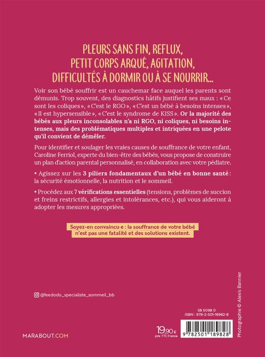 Pleurs sans fin, reflux, petit corps arqué, agitation, difficultés à dormir ou à se nourrir... Voir son bébé souffrir est un cauchemar face auquel les parents sont démunis. Trop souvent, des diagnostics hâtifs justifient ses maux : « Ce sont les coliques », « C’est le RGO », « C’est un bébé à besoins intenses », « Il est hypersensible », « C’est le syndrome de KISS ». Or la majorité des bébés aux pleurs inconsolables n’a ni RGO, ni coliques, ni besoins intenses, mais des problématiques multiples et intriquées en une pelote qu’il convient de démêler.
