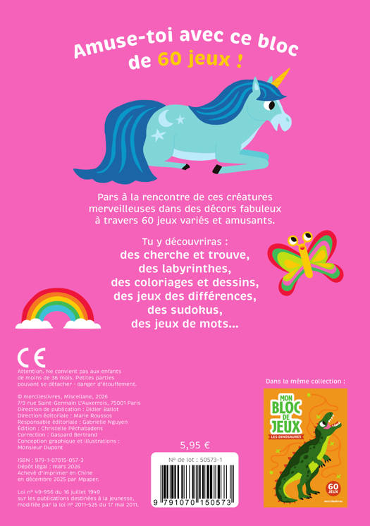 Un bloc de 60 jeux variés pour t'amuser de longues heures avec des licornes enchantées !