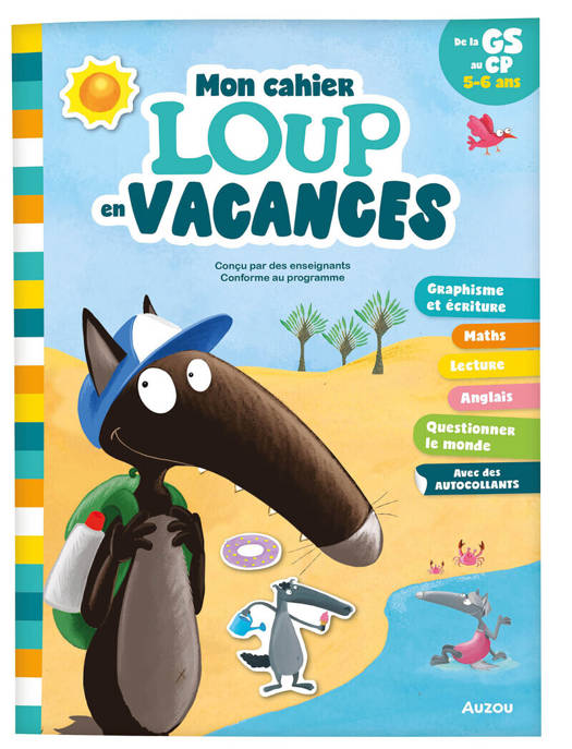 Graphisme, lecture, maths, anglais et découverte du monde... Toutes les matières réunies dans ce cahier de vacances "Je rentre en CP avec Loup".