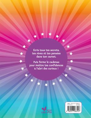 Un carnet secret de 124 pages avec un jaspage rose fluo et un cadenas coeur rose en plastique ainsi que 2 clefs. À l'intérieur, des pages lignées de journal intime.