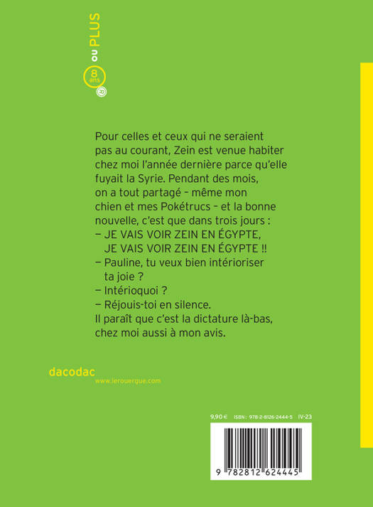 Pauline a grandi. Un peu. Et pour ceux qui ne sont pas au courant, l'année dernière, ses parents ont accueilli Zein et sa famille parce qu'ils fuyaient la guerre en Syrie. C'était super. Enfin c'était super, c'était bien. Enfin c'était bien, c'était quand même pénible. Parce que Pauline a dû partager sa chambre et prêter ses jouets. Et son chien. Et ses copains. Et évidemment, quand elles ont commencé à s'amuser ensemble, Zein est partie vivre en Égypte. Trop nul. Bref, cette année Pauline va prendre l'avion et aller voir Zein. Et ça c'est véritablement vraiment super.