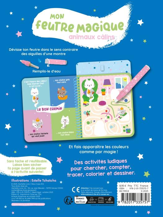 Remplis ton feutre d’eau, et fais apparaître les couleurs comme par magie ! Des activités ludiques, faciles d’utilisation pour chercher, compter, tracer, colorier et dessiner.