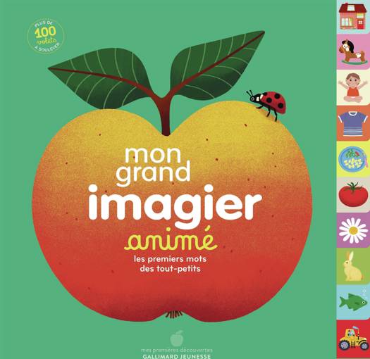 Un imagier plein d'animations pour éveiller la curiosité des tout-petits et leur apprendre les premiers mots! La maison et le salon, la chambre et les jouets, le bain et le corps, les habits et le parc, la cuisine et le repas, les fruits et les légumes, le jardin et les petites bêtes, la ferme et la forêt, la montagne et la mer, les engins et les transports.... Un imagier généraliste où les tout-petits retrouveront leur univers le plus familier, à travers de superbes illustrations animées.