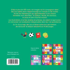 Un gros imagier de plus de 450 mots sur la vie quotidienne de l’enfant, en français et en arabe.