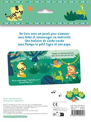 Aujourd'hui, Pampa s'amuse dans la jungle avec papa. Se cacher au milieu des roseaux, c'est rigolo ! Où se cache papa ? Peut-être ici ? Ou peut-être là ? Le petit tigre le cherche partout, mais ne le voit pas du tout ! Un livre bain, inséré dans une pochette, sur le principe du coucou caché avec un pouet qui favorise l'interaction avec les tout-petits.
