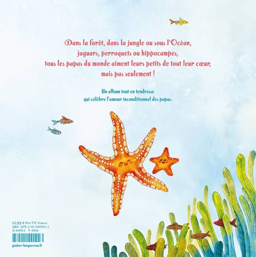 Dans la forêt, dans la jungle ou sous l'Océan, jaguars, perroquets ou hippocampes, tous les papas du monde aiment leurs petits de tout leur coeur, mais pas seulement ! Un album tout en tendresse qui célèbre l'amour inconditionnel des papas.