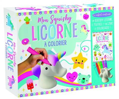 Les fans de licornes vont adorer ce coffret ! Elles y trouveront 6 feutres, un superbe livre de coloriages et un squishy licorne (10 cm x 10 cm) à colorier. Cette jolie licorne douce et moelleuse va devenir leur meilleure amie ! Les squishies sont des objets en mousse à mémoire de forme que l'on presse dans la main, comme des balles antistress, et qui reprennent tout doucement leur forme initiale.