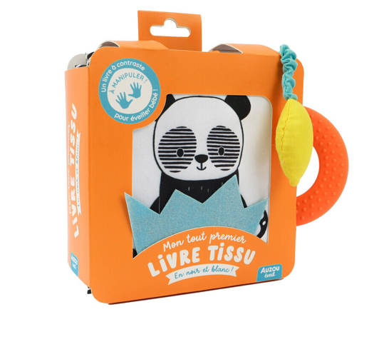 Un livre en tissu à contrastes pour un éveil visuel dès le plus jeune âge.
