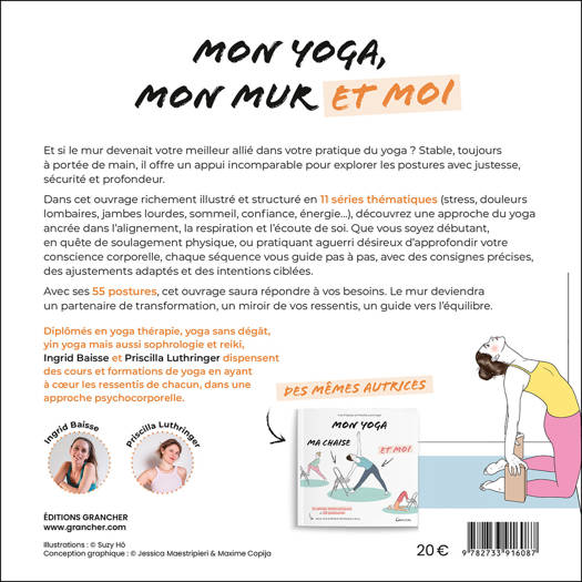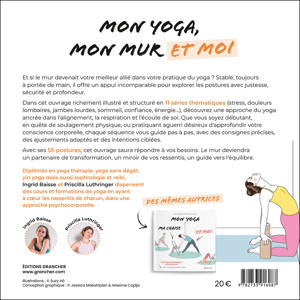 Et si le mur devenait votre meilleur allié dans votre pratique du yoga ? Stable, toujours à portée de main, il offre un appui incomparable pour explorer les postures avec justesse, sécurité et profondeur. Dans cet ouvrage richement illustré et structuré en 11 séries thématiques (stress, douleurs lombaires, jambes lourdes, sommeil, confiance, énergie…), découvrez une approche du yoga ancrée dans l’alignement, la respiration et l’écoute de soi. Que vous soyez débutant, en quête de soulagement physique, ou pratiquant aguerri désireux d’approfondir votre conscience corporelle, chaque séquence vous guide pas à pas, avec des consignes précises, des ajustements adaptés et des intentions ciblées. Avec ses 55 postures, cet ouvrage saura répondre à vos besoins. Le mur deviendra un partenaire de transformation, un miroir de vos ressentis, un guide vers l’équilibre.